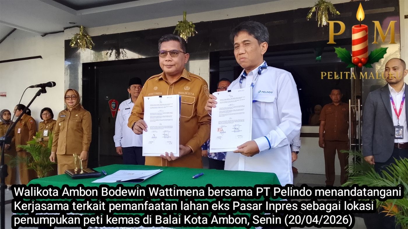 Ambon, Pelita Maluku — Pemerintah Kota Ambon memilih memperkuat kolaborasi lintas sektor ketimbang bergantung penuh pada APBD untuk mendorong pembangunan. Langkah ini ditegaskan Wali Kota Ambon, Bodewin Wattimena, saat apel pagi di lapangan Pemkot Ambon, Senin (20/4/2026).Dalam kesempatan itu, Pemkot Ambon menandatangani kerja sama dengan PT Peli...