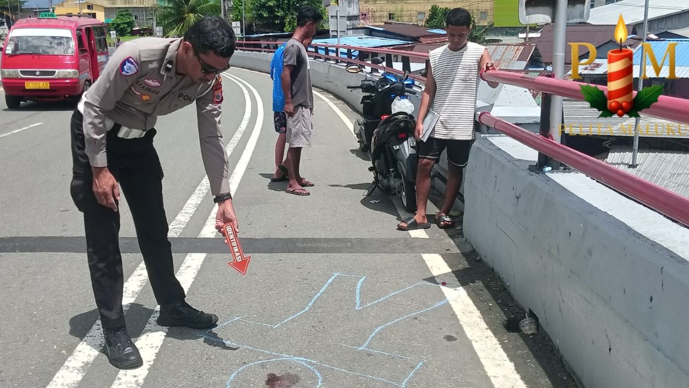 Ambon, Pelita Maluku — Perjalanan dari Tantui menuju Poka berakhir tragis bagi seorang ibu rumah tangga, Indah Sari (24), yang tewas dalam kecelakaan tunggal di Jembatan Merah Putih (JMP), Minggu (12/4/2026) sekitar pukul 12.30 WIT.Korban yang mengendarai sepeda motor Honda Beat nomor polisi DE 6454 NT itu melaju dari arah Tantui Atas menuju kawa...